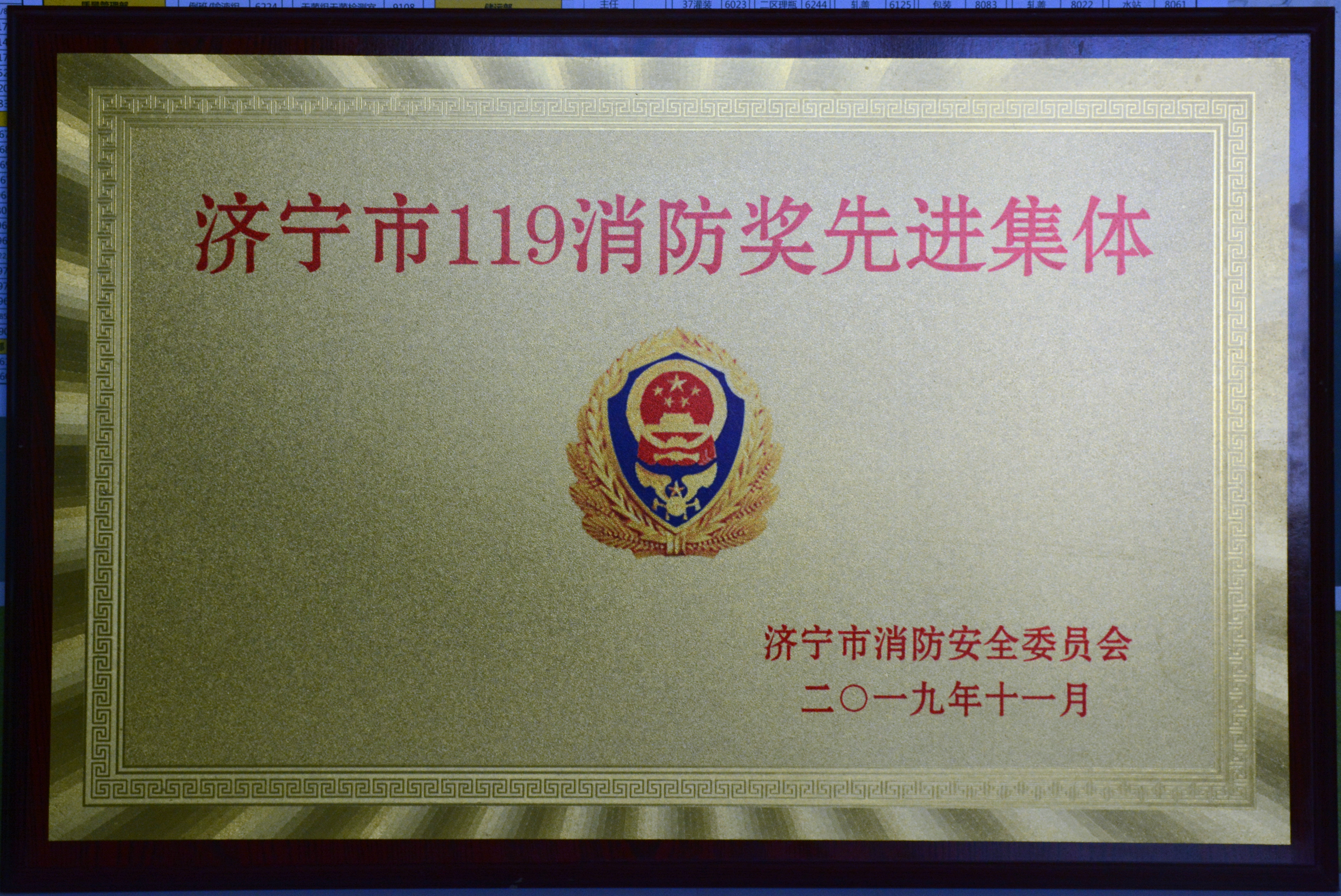 公司榮獲“濟寧市119消防獎先進集體”稱號