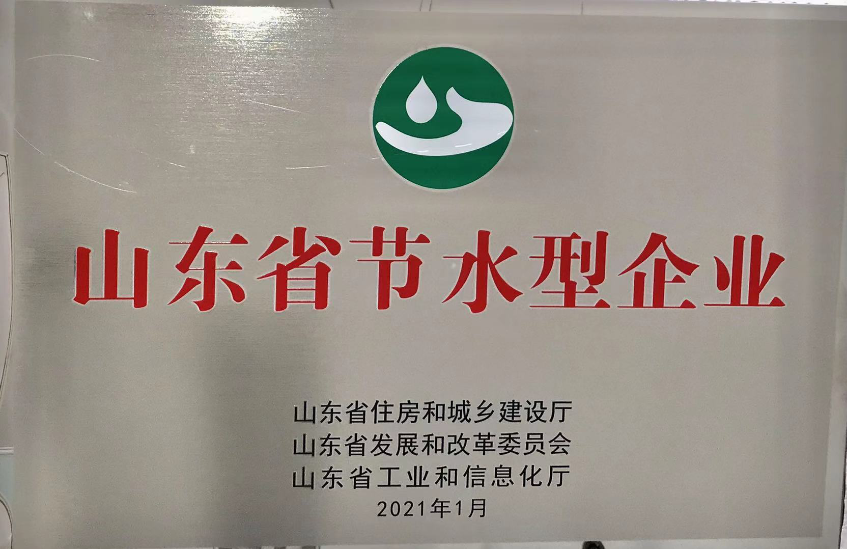 近日,公司獲得由山東省住房和城鄉建設廳、山東省發改和改革委員會、山東省工業和信息化廳聯合頒發的“山東省節水型企業”榮譽稱號。